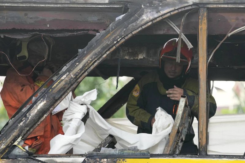 泰国曼谷近郊巴吞他尼府10月1日一客车起火。车上载有正在学校旅行的师生,恐有20余人死亡。司机幸存但似乎已经逃离,目前尚未找到。
