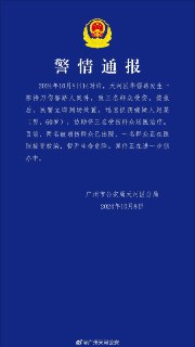 10月8日14时许,广州天河区华强路一男子持刀伤人,致三人受伤。嫌疑人赵某(男,60岁)被警方抓获。
