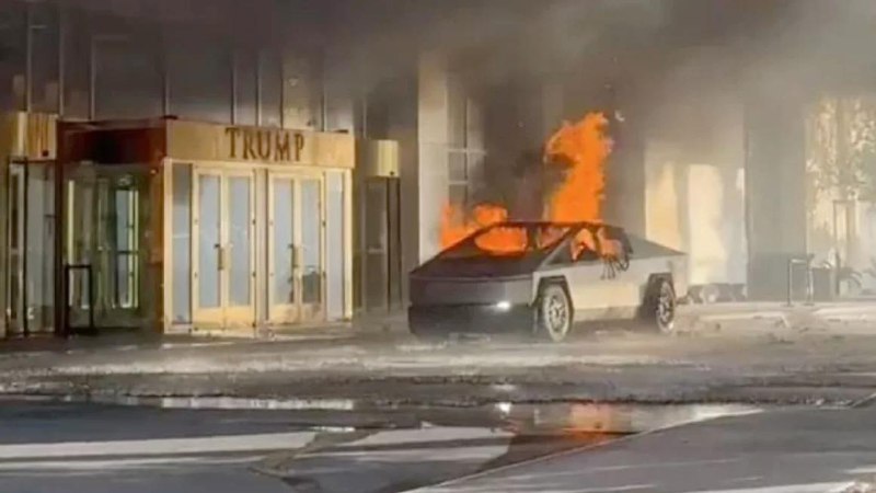 美国拉斯维加斯特朗普酒店门前1月1日有特斯拉电动皮卡起火并爆炸,造成1人死亡、7人受伤。