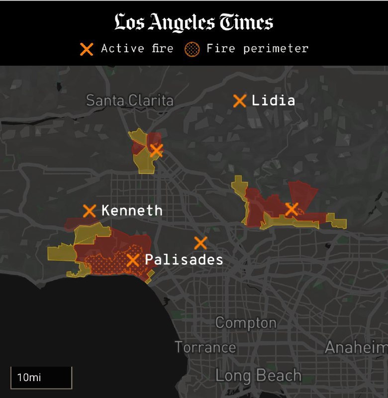 截止当地时间9日下午4点,洛杉矶山火已造成5人死亡,4000多栋房屋被烧毁,过火面积超过116平方公里,超过18万人被要求撤离,超过40万人失去供电。