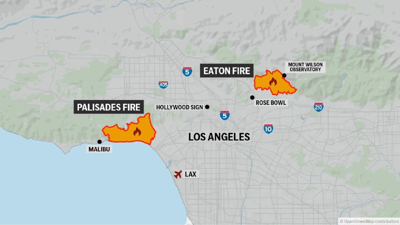 好莱坞地区,火灾逼近好莱坞露天剧场和中国大剧院,距离好莱坞星光大道约1.6公里。