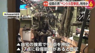 警方去年8月接获线报,对其住宅进行搜查,发现其持有具有杀伤力的、超18厘米长、直径7毫米的笔形枪1支。此外警方还在其家中搜出全长2米宽1米的“反坦克炮”,和91支气枪,其中17支气枪被认定有杀伤力。矢内还曾在自己的Youtube频道展示“反坦克炮”的发射效果。